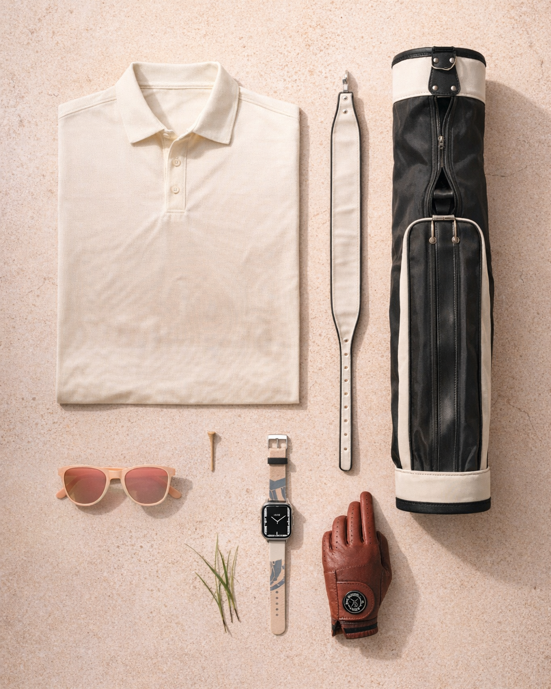 Ein Set, das die ruhige Schönheit von Küstenlandschaften einfängt. Sanfte Sandtöne und subtile Rosé-Akzente verschmelzen zu einem Look, der Eleganz und Entspannung auf dem Grün verspricht. Perfekt für lange Frühlingstage auf dem Platz.